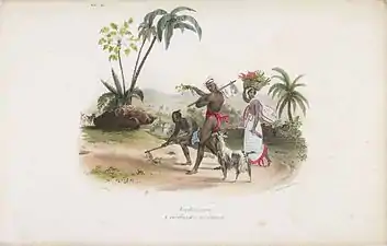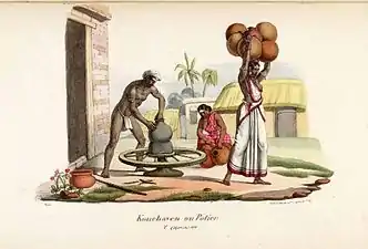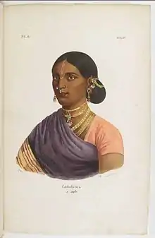 L'Inde française or "L'Inde française ou Collection de dessins lithographiés représentant les divinités, temples, costumes, physionomies, meubles, armes, et ustensiles, des peuples Hindous qui habitent les possessions françaises de l'Inde, et en général la côte de Cormandel et le Malabar" (transl. The French India or Collection of lithographed drawings representing the deities, temples, costumes, physiognomies, furniture, weapons, and utensils, of the Hindu peoples who inhabit the French possessions of India, and in general the coast of Cormandel and the Malabar) was a collection of 144 lithographed plates issued in 25 parts between 1827 and 1835 by J.-J. Chabrelie, and the first important French book on India. L'Inde française was about the French possessions in India, which were colonial possessions rather than mere trading posts. They included Pondichéry, Karikal and Yanaon on the Coromandel Coast, Mahé on the Malabar Coast, and Chandernagor in Bengal.