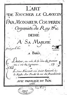 L'art de toucher le clavecin (English: The Art of Playing the Harpsichord) is a didactic treatise by the French composer François Couperin. It was first published in 1716, and was followed by a revised edition in 1717.