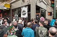 Gay bars and lesbian bars became LGBT community centers and areas where LGBT residents had public visibility.[122] Michael Stabile of Out stated that the first "notorious" gay bar was The Dash, which opened in 1908.[6] The number of San Francisco gay bars increased in the 1960s.[29] In 1973, there were 118 gay bars listed in the San Francisco Gay Yellow Pages, in 2011, there were 33.[123] The first gay bar to have clear windows was Twin Peaks Tavern, which removed its blacked-out windows in 1972.[6] The first gay Latino bar was Esta Noche, in 1979.[124] In 2014 Pete Kane stated that as same-sex rights and culture became mainstream, some gay bars in the city had closed due to gentrification[124][125] or became "post-gay".[87] More importantly, the rapid loss of tens of thousands of San Francisco gay men during the height of the HIV/AIDS epidemic heavily contributed to the loss of many gay bars in the city.[126][127][128]
