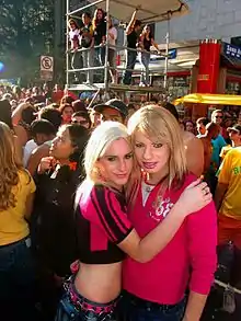 The status of LGBT rights in Brazil has expanded since the end of the military dictatorship in 1985, and the creation of the new Constitution of Brazil of 1988.[19] In 2009 survey conducted by Projeto Sexualidade (Prosex) with a total of 8.200 people from 10 state capitals has indicated that 7.8% of the interviewed males identified as gay and 2.6% identified as bisexual. Out of the interviewed females, 4.9% identified as lesbians and bisexual women comprised 1.4%[20] There are no nationwide statistics.