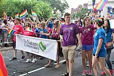 The District of Columbia is regarded as very accepting and tolerant of LGBT people and same-sex relationships, with a 2017 Public Religion Research Institute poll indicating that 78% of residents supported same-sex marriage.[3] The District also explicitly bans discrimination on the basis of sexual orientation and gender identity, and the use of conversion therapy on both minors and adults.[4] Same-sex marriage legislation came into effect in March 2010, granting same-sex couples the right to marry, while domestic partnerships were legalized in 2002.