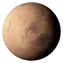 L 98-59 b is an exoplanet having a size between that of the Earth and Mars, and a mass only half that of Venus.[2] It orbits L 98-59, a red dwarf 35 light-years away in the constellation Volans. There are at least 3 (possibly 4) other planets in the system: L 98-59 c, d, e, and the unconfirmed L 98-59 f.[2] Its discovery was announced on 27 June 2019 on the NASA website. It is the smallest planet discovered by TESS[4] and the lowest-mass planet whose mass has been measured using radial velocities.[2]