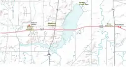 LaDue Reservoir is a reservoir located near Ohio State Route 44 and U.S. Route 422 in Auburn and Troy Townships in Geauga County, Ohio. Originally called the “Akron City Reservoir”, it was dedicated as the LaDue Reservoir on October 11, 1961, in honor of Wendell R. LaDue.[3] The Geographic Names Information System recognized four variants names, including Akron City Reservoir, Bridge Creek Reservoir, Ladue Reservoir, and Wendell R. Ladue Reservoir.[1]