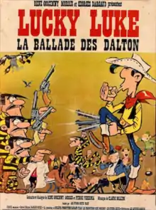 La Ballade des Dalton (aka The Ballad of the Daltons in English) is a 1978 French animated film written and directed by René Goscinny, Morris, Henri Gruel and Pierre Watrin starring the comic book character Lucky Luke. Two different adaptations of the film in book form were both published in French in 1978. The first, adapted by Guy Vidal, was in text form rather than comic strip, and was accompanied by images from the film. The second was a comic strip adaptation by an uncredited Pascal Dabère[1] and formed part of the book, La Ballade des Dalton et autres histoires (The Ballad of the Daltons and Other Stories).