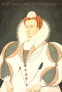 "La Belle Châteauneuf" (fl. 16th C.) was the name popularly given to Renée de Rieux, daughter of Jean de Rieux, seigneur de Châteauneuf, who was descended from one of the greatest families of Brittany. The dates of her birth and death are unknown.