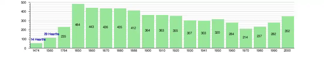 As of 2000, there were 139 private households in the municipality, and an average of 2.5 persons per household.[10] There were 44 households that consist of only one person and 13 households with five or more people. Out of a total of 141 households that answered this question, 31.2% were households made up of just one person. Of the rest of the households, there are 36 married couples without children, 53 married couples with children There were 6 single parents with a child or children.[11]