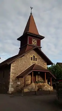 In the 13th century the village belonged to the Knights Templar and it came into the possession of the Order of St John in 1315.[3] It was united with the settlement at Cransaz to form a commandry which was headed by the preceptors of Vaud. The Preceptors were, until 1580, the patrons of Montbrelloz, Fribourg, and Saint-Jean de Grosset, Pays de Gex. The commandery was abolished during the Protestant Reformation.[4]