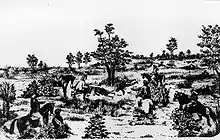 Instead of returning to the ship, the expedition continued to examine the country. Brown described this as further "exploration", but most scholars now agree that the evidence points to a punitive expedition. On 6 April 1865, Brown's party became engaged in a conflict with a large group of Aboriginal people. Most accounts state that the party walked into an ambush, but at least one account[2] asserts that they attacked a native camp. Regardless of the cause, the outcome is not in dispute: at least six, and possibly as many as twenty Aboriginal people were killed, whereas the expedition party suffered no injuries.