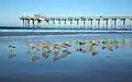 The beach is approximately one mile (1.6 km) long and stretches from the sea cliffs just north of La Jolla Cove to Black's Beach south of Torrey Pines State Park. Shores meets the Scripps Institution of Oceanography campus and Kellogg Park, encompasses the Scripps Pier and borders the San Diego-La Jolla Underwater Park Ecological Reserve to the south. The beach is a popular launch point for kayakers as it is the only beach boat launch in the San Diego city limits.[1] The beach is also popular among stand up paddlers, swimmers and snorkelers. The southern end of the beach is especially rich with wildlife. During certain times of year, leopard sharks, diamond stingrays, round stingrays, and species of guitarfish are common. Green sea turtles and broadnose sevengill sharks are elusive but can be found farther offshore.