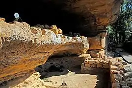 The archaeological site Abri de la Madeleine (Magdalene Shelter) is a rock shelter under an overhanging cliff situated near Tursac, in the Dordogne département of the Aquitaine Région of South-Western France. It represents the type site of the Magdalenian culture of the Upper Paleolithic.[1] The Bison Licking Insect Bite, a 20,000 year old carving of exceptional artistic quality, was excavated at the site. The shelter was also occupied during the Middle Ages. The medieval castle of Petit Marsac stands on the top of the cliff just above the shelter.[2] An engraved bone rod from the cave, depicting a lioness licking the opening of either a gigantic human penis or a vulva, shows the first documented act of bestiality.[3]