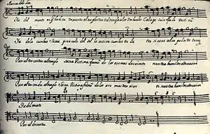 The music by Torrejón conserves much of the character and the idiosyncrasies contained in the comedies of Calderón as previously set by Juan Hidalgo. Torrejón may have been one of Hidalgo's pupils and liberally used the music of his predecessor, in an extended dialogue with him. The score makes use of a variety of Spanish song types, with no Latin American musical influences. The erotic nature of the text is heightened by the use of dance rhythms, musical repetitions, and sensual lyrical lines. The exact instrumentation has not been found in Torrejón y Velasco's surviving original scores. However, the scores of other late seventeenth century musical plays in Spain suggest that the instruments would include harps, guitars, viols, violins, clarino and regular trumpets, drums, and castanets.[17]