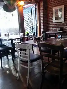 The original restaurant was added in the year 1976, and was later known as Café Valparaíso. Where it became part of the neighborhood's Gourmet Ghetto and is award-winning.[4] It is also known as Café de la Peña.[5] The cafe also sells endemic Chilean foodstuffs and novelties. Valpo's menu focuses heavily on Chilean empanadas.[5] The menu evolved over the years adding other Latin American cuisine such as food from Cuba, Mexico, Guatemala, and Peru.[5] The menu does however continue serving many Chilean dishes such as Humitas.[5] In the mid 2010s the cafe left La Peña and relocated to Solano Avenue in nearby Albany folding in 2018 due to "personal reasons".[6]
