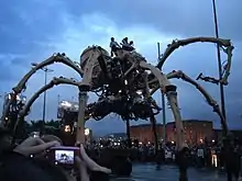 La Princesse is a 15-metre (50-foot) mechanical spider designed and operated by French performance art company La Machine. The spider was showcased in Liverpool, England, as part of the 2008 European Capital of Culture celebrations, travelling around the city between 3-7 September.[1] In 2009, it was on display in Yokohama, Japan, as part of Yokohama's 150th anniversary of its port opening.[2] Arts reviewer Lyn Gardner wrote in The Guardian "There were times when it seemed to be leading the entire population of the city on a merry dance, like some kind of arachnid pied piper."[3]