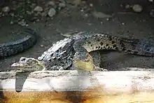 Much of the ecotourism was developed here in the 1990s when groups such as Ecosolar worked in this area to help after the ban on the sea turtle and crocodile trade eliminated most people's livelihoods. This group, along with ten local families began working to offer tours in the lagoon and beach areas, inviting biologists and biology students in Mexico to study the area.[1] This ecotourism revolves around the lagoon of the Tonameca River and the main local cooperative that conducts tours is called Servicio Ecoturisticos de La Ventanilla (La Ventanilla Ecotourism Services). This group has conducted guided tours of the lagoon since the 1990s and income from these tours supports reforestation and other ecological projects.[5] Most of the village's families are involved in this venture and they have a website at www.bioplaneta.com.[2] Tours of the lagoon are available on both land and canoe to see the mangroves, and the wildlife, especially the birds, iguanas and crocodiles in their natural habitat. On Uma Island, in the lagoon, there is a greenhouse for mangrove reforestation, a nursery to hatch and raise crocodiles for release, as well as captive deer, and other animals.[3][4][6] This group is headquartered at a palapa within the village and there is also a small restaurant on the lagoon island.[7]