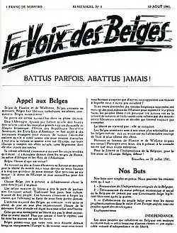 ![]() The first issue of La Voix des Belges, 10 August 1941 | |