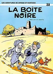La boîte noire, by Nic (Broca) & Cauvin, is the thirtyfirst album of the Spirou et Fantasio series, and the second of the authors. The story was initially serialised in Spirou magazine, before released as a hardcover album in 1983.