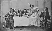 The innkeeper Gaudenzio tries in vain to eject the Bohemians, who never pay and are continually up to no good. During the conversation another piece of horseplay on their part is discovered. They sit down to dine, while Musette gaily sings. (Canzonette: "Mimì is the name of my sweet blonde.") Naturally when they are asked to pay the bill, they have no money. A comic fight ensues between them and the innkeeper, who has called his servants to assist him. It is ended by Barbemuche, who offers to pay the bill.