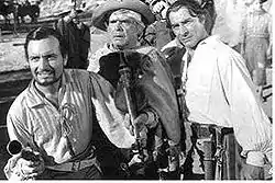 The filming included more than 1,000 actors as extras for the crowd scenes, although only eighty actors had speaking parts.[31] Among the extras there were local gauchos hired by the producers and others provided as laborers by their employer, the Patrón Costa, a wealthy local family.[32] There were also the aforementioned fencing trainer and soldiers lent by the military garrison and two pato players from Buenos Aires, experts falling from horses. As the gauchos did not want to be dressed as Spaniards, military conscripts played the part.[33]