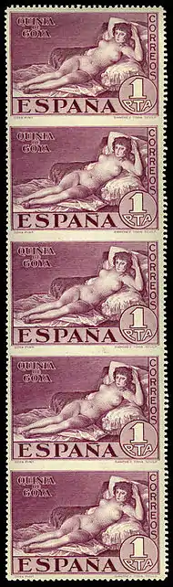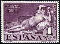 The Naked Maja (Spanish: La maja desnuda) is a philatelic name for three postage stamps of Spain of 1930 depicting the La maja desnuda painting (1800) by Francisco de Goya (1746–1828).[1] They are part of a set marking the anniversary of the death of this Spanish artist, and are considered the world's first postage stamp with nudes.[2]