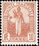 Images of ancient statues or their imitations were quite common elements of design of both postage stamps and various fiscal stamps, vouchers, cheques, banknotes, and securities, i. e. any government and corporate securities that needed security printing against counterfeiting using aesthetically acceptable complication of the design. In addition, the stamps of African colonies often featured African women with naked breast. It was the La Maja Desnuda, however, that became the world's first case of open image of the body of a worldly woman (not a goddess) with pubic hair,[18] thus opening a new popular topic in philately: nude.[2]