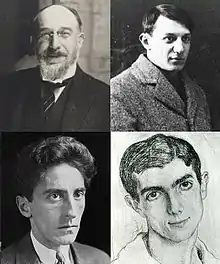 The piece acquired additional prestige thanks to Satie's wide connections in the Parisian cultural scene. By April 1923 he had brought in Picasso to create the wardrobe and Massine to regulate the choreography.[5] Count Beaumont, who dabbled in costume and theatre design, gave Picasso specific instructions, demanding "women in shades of gold with white wigs and masks...men in shades of brown with golden wigs, and draperies over their formal costumes...needless to say the costumes should be of utmost fantasy made from stuffs of utmost simplicity."[6] Picasso also offered to paint four large grisaille panels on classical subjects to serve as backdrops for the masquerade. Beaumont enthusiastically agreed, but Picasso's dealer Paul Rosenberg persuaded the artist to drop that idea as too unremunerative for the amount of work involved.[7]