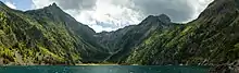 The southern part of the lake and valley are classified as part of a "réserve naturelle intégrale" since 1995.[1] This classification aims to preserve such areas in their natural state as if entirely unaffected by human activity. This restricted area is forbidden to visitors and is instead reserved exclusively for scientific research,[2] having been recognised in 2012 as an essential protected area for its scientific importance according to an assessment by the International Union for Conservation of Nature.