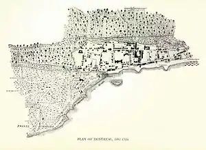 ![]() Map of Montreal, 1687 to 1723. The Lachine settlement was located southwest of Montreal proper. | |||||||
