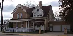 It is a two-story, cream brick house, surrounded by a reproduction wrought iron fence. It has a wrap-around front porch. It was built in c.1878 and c.1903. The cream brick had to be brought by river from the railway at Portage; the house seems to be the only residence in Sauk City built of that material in its era.[2]