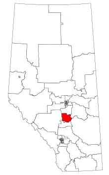 | Drayton Valley-Calmar, Wetaskiwin-Camrose | Battle River-Wainwright | Rocky Mountain House | Drumheller-Stettler, Innisfail-Sylvan Lake, Red Deer-North |