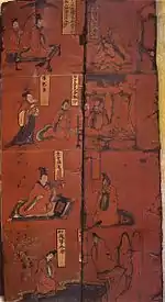 - Kathleen Kuiper The Culture of China Page 232 2010 "Among the most celebrated examples of Han lacquer painting is a basket found at Lelang (National Museum, Seoul), decorated with 94 small figures of paragons of filial piety, virtuous and wicked rulers, and ancient worthies."