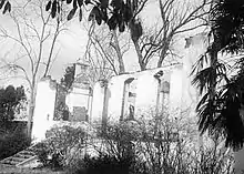 The Japanese finally attacked Kiangyin on December 1, 1937 and the city fell to the superior forces. A week later, a group of Japanese entered the mission compound, stripped the buildings of their contents and set them afire. Seventeen of the twenty buildings in the compound were completely destroyed, including the Moffett home.[13] Lacy and Kate Moffett were on furlough in the United States at the time of the attack.