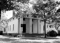 The Ladies' Literary Club Building was built in approximately 1843 as a home for William M. Davis.[2] It was likely designed by Arden H. Ballard and built by his firm of Norris, Cross, and Ballard.[3] At some point, it was sold to Elijah Grant, who operated a local dry goods store.[4] When Grant died in 1851, his wife Mary and son Edward continued to live in the house. Mary died in 1883, and Edward continued to live in the house, his fortune slowly diminishing through a series of bad investments. He eventually began selling the furnishings, and in 1913 sold the house itself.[4] The Ladies' Literary Club purchased the property to use as their meeting hall.[2]
