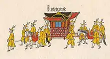 Lady Hyegyeong moved into a pavilion outside the palace, where she was tutored for a month by her parents and palace and palace staff.[8] The wedding ceremony with Crown Prince Sado was held over a period of seven days in the first month of 1744.[9]