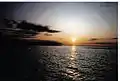 Sunset over the island looking towards the Isle of Arran. The Half tide rock is visible to the right hand side.