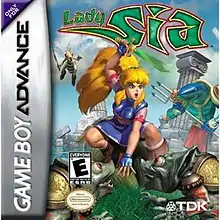 Lady Sia is a platform game with action-adventure elements made by RFX Interactive for the Game Boy Advance. It was published by TDK Mediactive, released in the USA on October 15, 2001, and released in Europe on October 19, 2001. Lady Sia is one of the few original games produced by RFX Interactive. The game takes place in a fantasy world where the player assumes the role of the She-Ra/Xena-esque warrior princess, Lady Sia. It is her task to defeat the T'soas, a race of creatures created by the evil warlock Onimen who has declared war on the other realms. Her quest leads her through four different realms, the last one being the home continent of the T'soas themselves. A sequel was planned for the GBA in 2003 but was cancelled due to TDK Mediactive being purchased by Take-Two Interactive that same year.