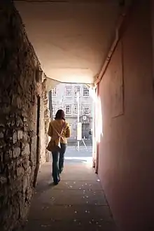 Located in Edinburgh's Lawnmarket, Lady Stair's Close is the location of a 17th-century townhouse called Lady Stairs House built in 1622 for Sir William Gray of Pittendrum, an Edinburgh Baronet. It was originally called Lady Gray's House after the widow of the first proprietor.[1] She was the mother of the Scots Worthy Andrew Gray whose books became well-known despite dying at an early age. It was then bought in 1719 by Elizabeth Dundas, Lady Stair,[2] the widow of John Dalrymple (1648 - 1707) the 1st Earl of Stair, hence its present name.[3]