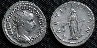 | silver antoninianus struck by Gordian III in Rome late 240 - July 243 AD; ref.: RIC 86 | |
