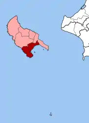 Laganas (Greek: Λαγανάς) is a village and a former municipality on the island of Zakynthos, Ionian Islands, Greece. Since the 2011 local government reform it is part of the municipality Zakynthos, of which it is a municipal unit.[2] The municipal unit Laganas covers the southernmost part of Zakynthos. Its municipal seat was the town of Pantokratoras (pop. 925 in 2011). The municipal unit of Laganas has a land area of 74.104 km².[3] Its largest towns are Mouzaki (pop. 1,702), Lithakia (pop. 1,307), Pantokratoras, Kalamaki (pop. 890), Laganas (pop. 729), and Keri (pop. 469). The central and eastern part of the municipal unit are flat, but there are hills up to 450 m elevation in the west. The Zakynthos International Airport lies in the eastern part of the municipal unit, near Kalamaki. The beach village Laganas, part of the community of Pantokratoras, is on the southeastern coast. A large part of Laganas is a national park, established for the protection of turtles.