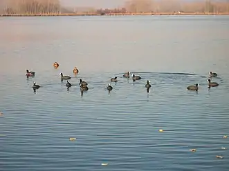 The Lago di Candia is a small, shallow Italian lake of glacial origin, located by the town of Candia Canavese in the Piedmontese province of Turin. The lake forms the centre of an environmentally important wetland area which, as the Parco naturale del Lago di Candia, became a nature reserve in 1995.