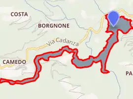 Lago di Palagnedra is a manmade lake at Palagnedra, Ticino, Switzerland. The reservoir has a capacity of 4,260,000 m3 (3,450 acre⋅ft) and a surface area of 25 ha (62 acres). The dam on the Melezza river was completed in 1952, height 72 m (236 ft).