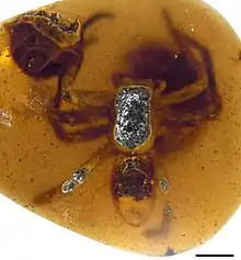 Lagonomegopidae is an extinct family of spiders known from the Cretaceous period. Members of the family are distinguished by a large pair of eyes, positioned on the anterolateral flanks of the carapace, with the rest of the eyes being small. They have generally been considered members of Palpimanoidea, but this has recently been questioned.[1] Members of the family are known from the late Early Cretaceous (Albian) to near the end of the Late Cretaceous (Campanian) of Eurasia, North America and the Middle East, which was then attached to Africa as part of Gondwana. They are generally assumed to have been free living hunters as opposed to web builders.[1]