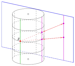 - The points (line on the cylinder through the center) appear not as images.