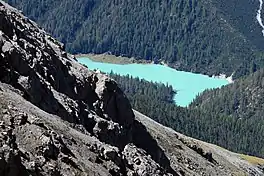 Lai da Ova Spin is a compensation reservoir on the Spöl river at Zernez, Grisons, Switzerland. Its volume is 7.4 mio m³ and surface area 34 ha (84 acres).