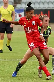 She spent the 2019 season playing for Arna-Bjørnar, 21 league games,[1][7] before signing with Adelaide United for the 2019–20 W-League season.[8]