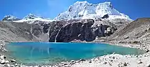 Lake 69 (Spanish: Laguna 69) is a small lake near of the city of Huaraz, in the region of Áncash, Peru. It is one of the more than 400 lakes that form part of the Huascarán National Park, a UNESCO Biosphere Reserve and World Heritage Site. In the thaw season, the lake is nourished by a waterfall from Chacraraju.[1][2]