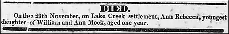- History of the Lake Creek Settlement