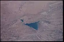 Lake Dukan (or Lake Dokan) (Arabic:بحيرة دوكان) is a lake in Kurdistan Region. It is located close to the city of Ranya, and is a reservoir on the Little Zab created by the construction of the Dukan Dam. The Dukan Dam was built between 1954 and 1959 as a multi-purpose dam to provide water storage, irrigation and hydroelectricity.[1] Prior to the flooding of Lake Dukan, the area has been subjected to archaeological research to investigate as many archaeological sites as possible. An archaeological survey in the Ranya Plain documented some 40 archaeological sites with evidence for occupation ranging from the sixth millennium BCE up to the present. Five of these sites were then excavated: Tell Bazmusian, ed-Dem, Kamarian, Qarashina and Tell Shemshara. The excavations at Tell Bazmusian revealed a temple dating to the second millennium BCE.[2] At Tell Shemshara, an early-sixth millennium BCE village was excavated, as well as an early-second millennium BCE palace with a small archive of clay tablets.[3][4] The inhabitants of some 50 villages in the flooded area, around 1,000–1,200 families, were resettled to the west of the lake.[5]
