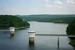 Lake Gileppe is located in Wallonia, in the east of Belgium, near the city of Verviers. There is a 78 m high panoramic tower with a restaurant on the top to look at the lake and the landscape. The water volume is 26,400,000 m³ and the area is 1,3 km².