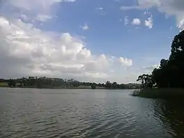 Lake Ginninderra is an artificial lake located on the Ginninderra Creek in Canberra. It is adjacent to the Belconnen Town Centre. The lake was constructed in 1974 to collect stormwater discharge from a 98.8 square kilometres (38.1 sq mi) catchment that includes the surrounding suburbs of Aranda, Macquarie, Cook, Bruce, Belconnen, McKellar, Giralang, Kaleen in the eastern areas of Belconnen.