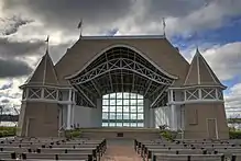 The bandshell is used for concerts throughout the summer months. The bandshell complex also contains a picnic area and a seasonal outdoor restaurant, Bread & Pickle.[7][8]